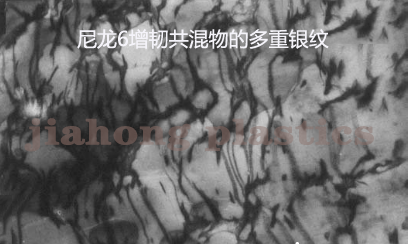二、多重銀紋機理。尼龍6增韌橡膠共混體系中,橡膠粒子起應力集中的作用,在與應力方向垂直的赤道附近受力較大,引發銀紋的產生。銀紋的擴展過程中遇到別一個橡膠粒子或銀紋就會終止。大量銀紋的存在并吸收了沖擊能,共混物韌性有了大幅度提高。