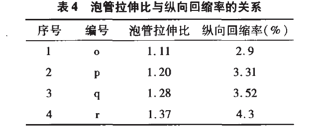 表4 泡管拉伸比與縱向回縮率的關系